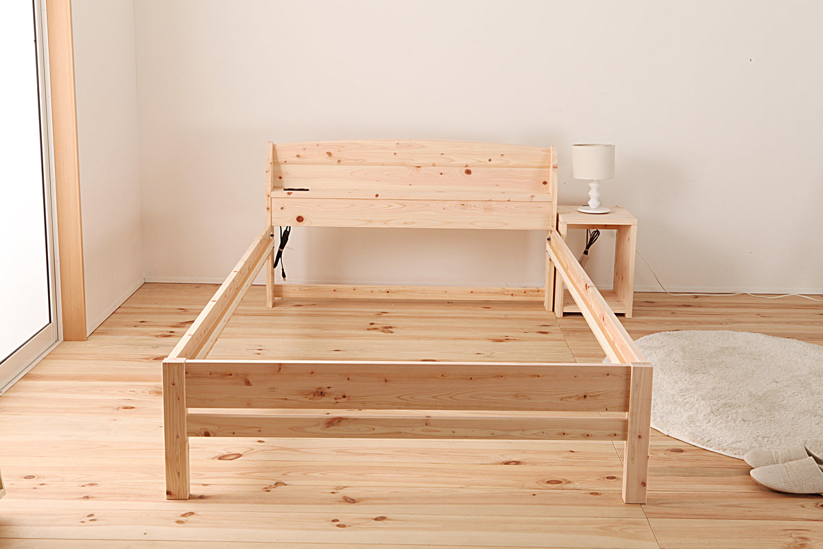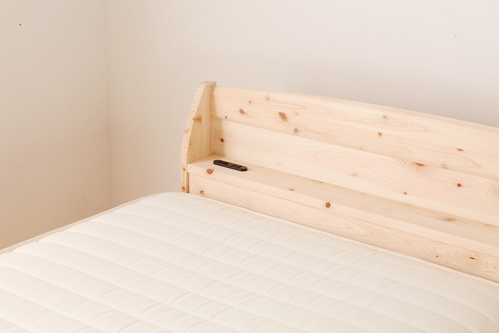 国産ひのき 棚コンセント付き すのこベッド セミダブル