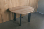 このテーブルは、円の5/6の位置を直線にカットしたユニークな形状が特徴です。