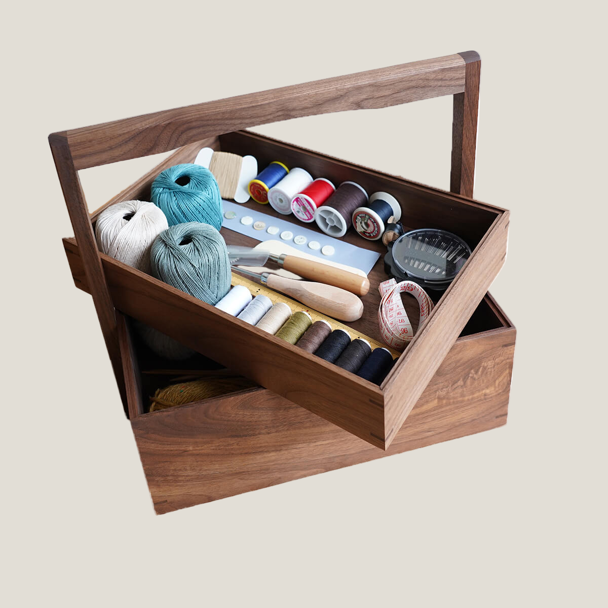 裁縫道具などの細々としたものをまとめて収納できる、便利な収納ボックスです。