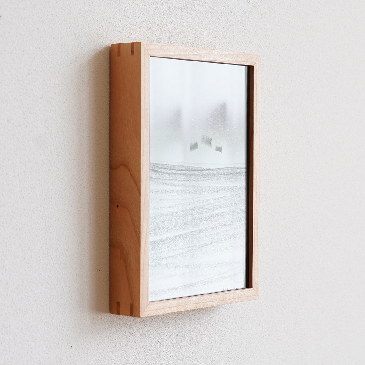 This frame embodies the sophisticated techniques of Fuchu Furniture, a tradition with over 300 years of history in Hiroshima. From the precise 45-degree miter joints to the use of "chigiri" (wooden keys) for added strength and aesthetic appeal, the skilled craftsmanship ensures a sharp beauty that elevates both the artwork and its surroundings.