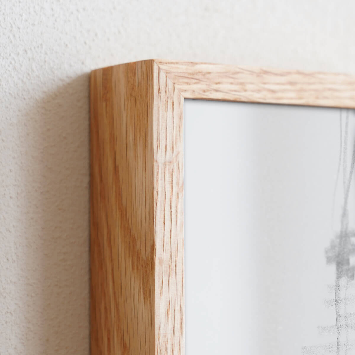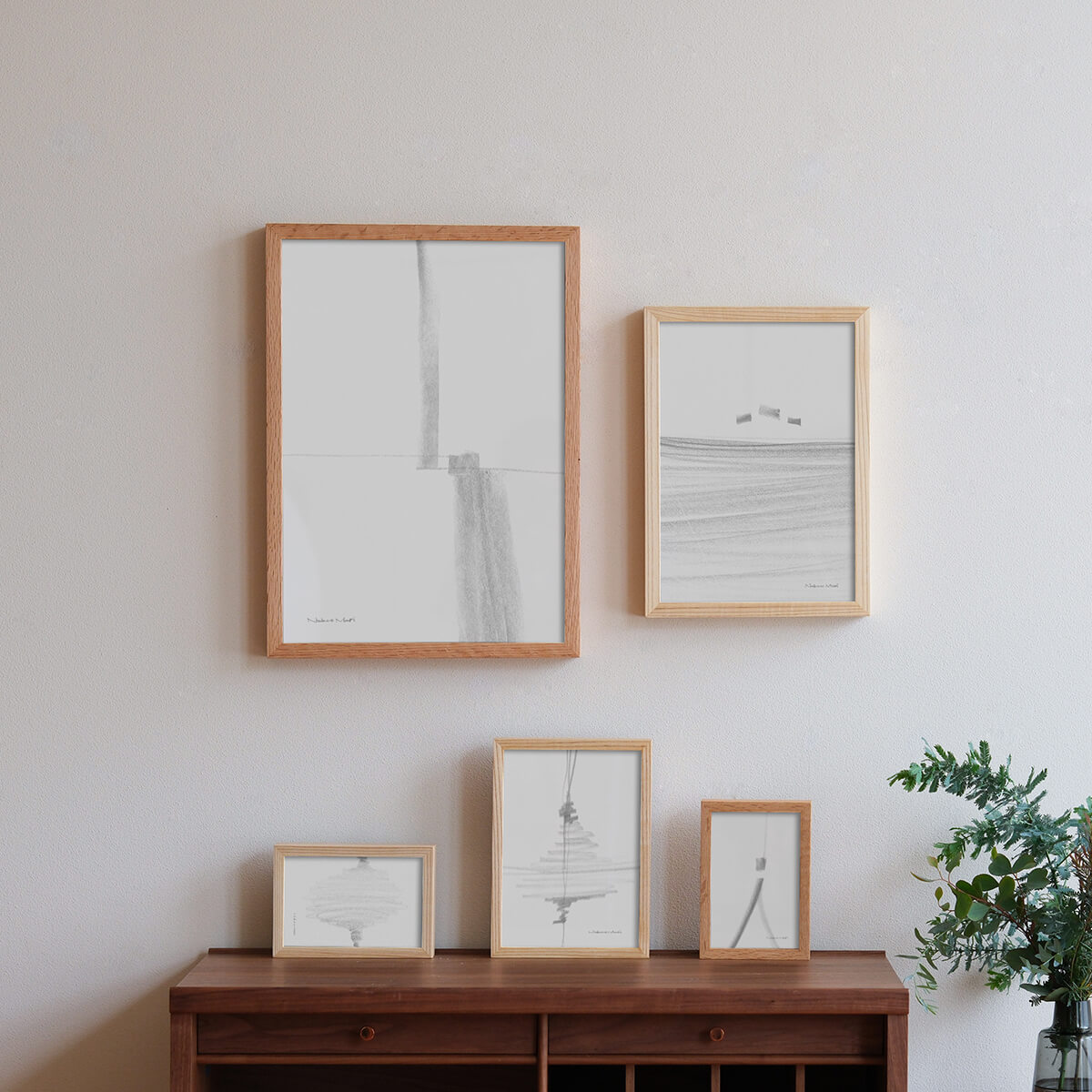 Born from the desire to make picture frames a more familiar part of daily life, the "SANO" model features a slender, minimalist form. It is highly versatile, perfect for posters, photographs, or even children’s artwork. The natural texture of solid wood combined with a meticulously polished matte finish allows it to blend seamlessly into any interior.