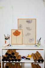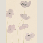 白いケシの花をテーマに、やわらかなタッチと静謐な構図で描かれています。繊細な白の濃淡と淡いベージュの背景が、どこか儚くも凛とした美しさを醸し出し、眺めるほどに心を落ち着かせる1枚です。
