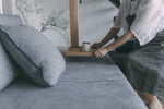 天板の一部がそのまま着脱可能なトレーになっており、飲み物やお菓子などを載せたまま、ソファからキッチン、あるいは別の部屋へとスムーズに持ち運びができます。