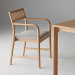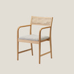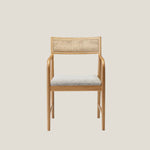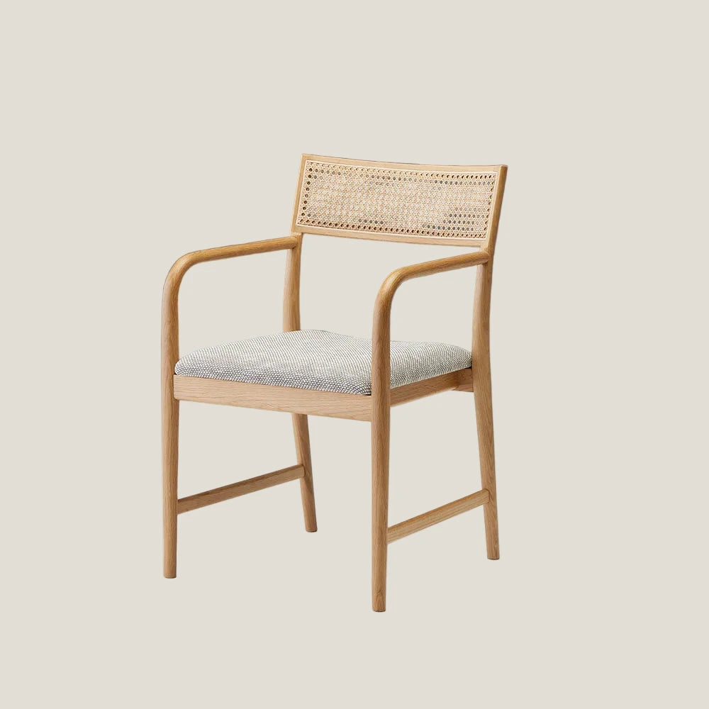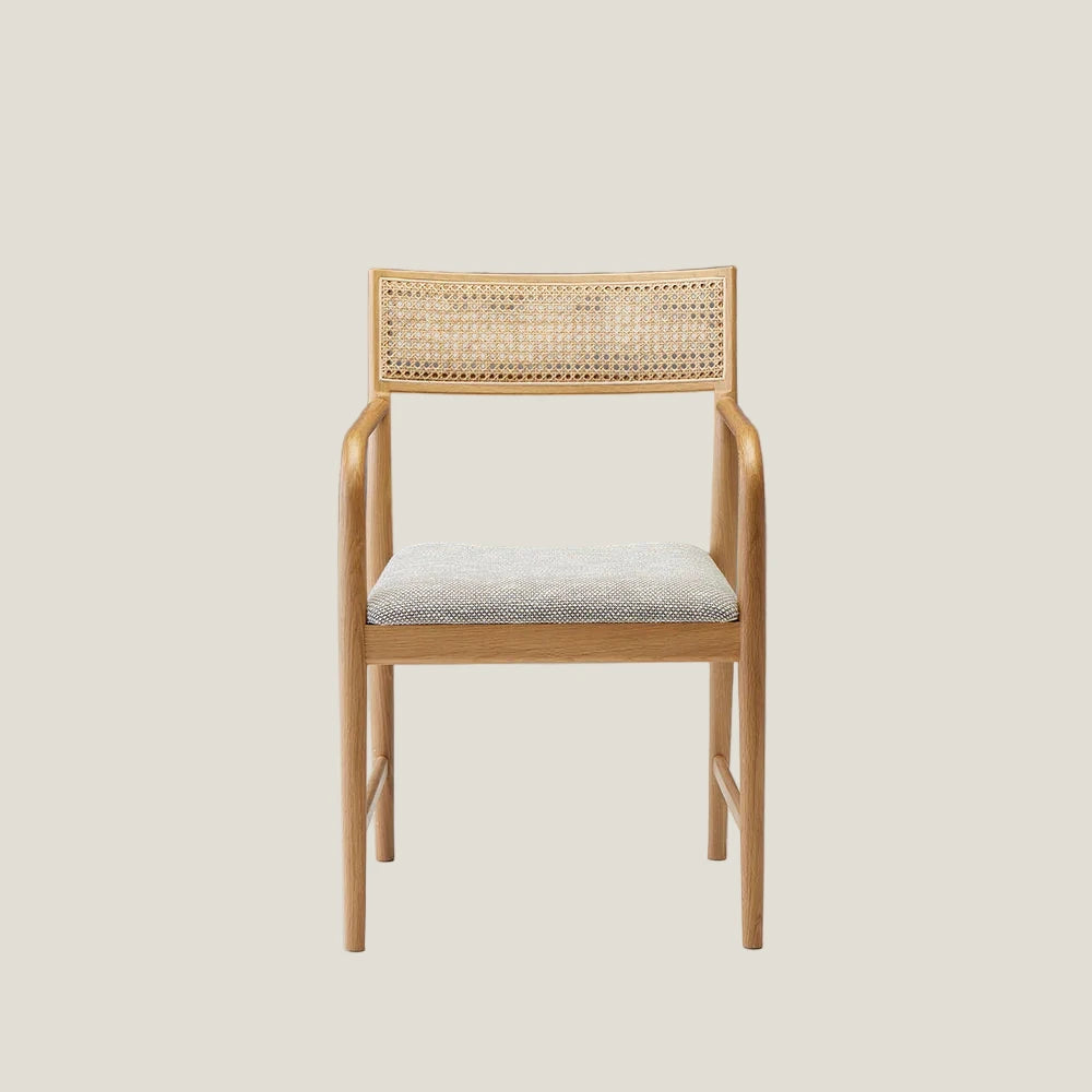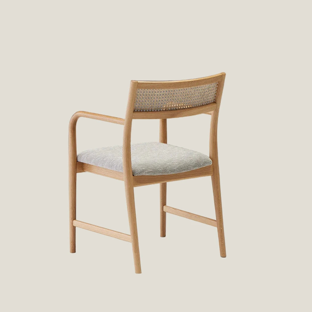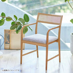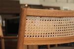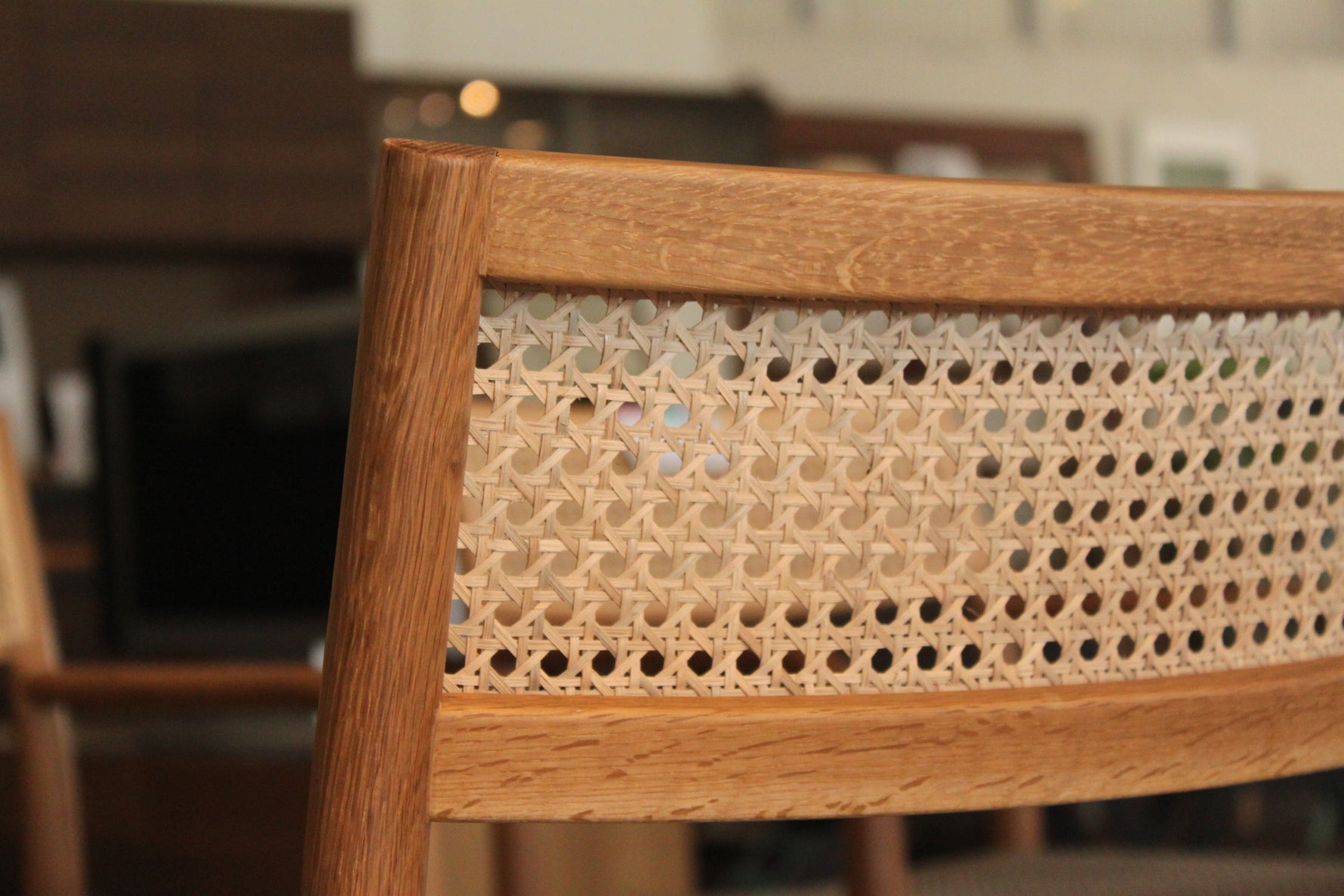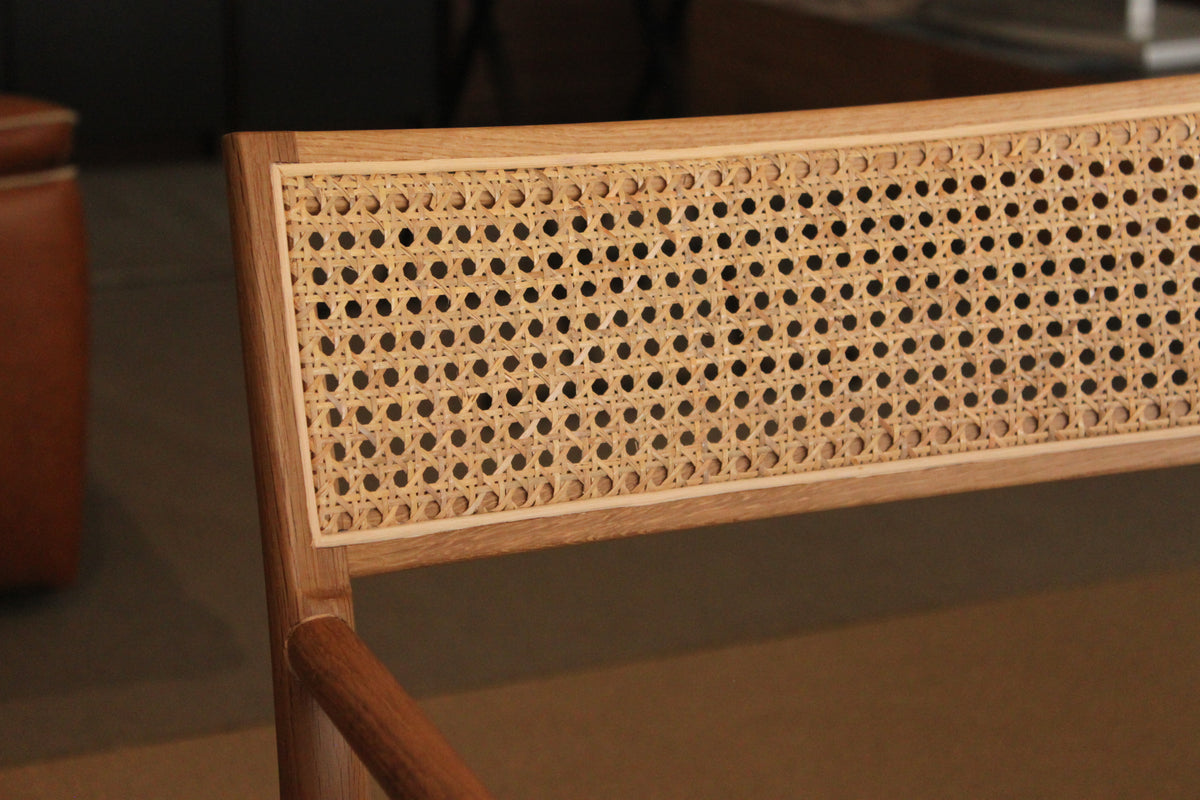 背もたれはラタン張りデザインになっています。籐のパーツがクラシックな印象を与えると同時に、座り心地を向上させています。