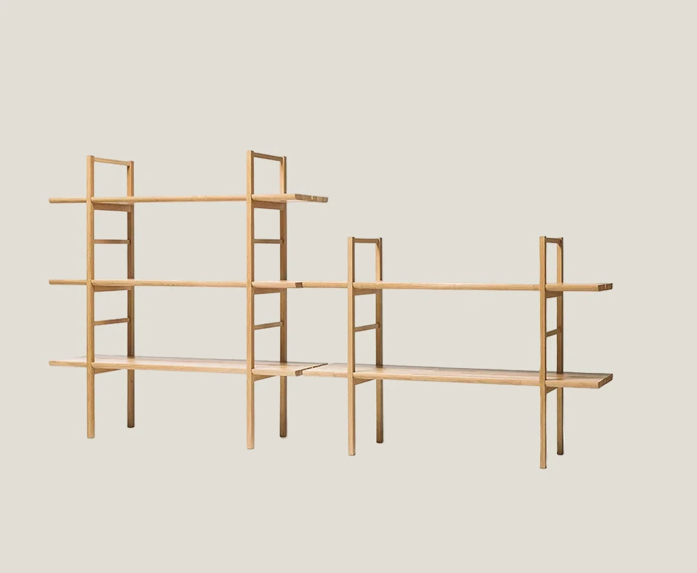 繊細なフォルムと重厚なボードが織りなすyamanamiシェルフは、乱雑に積まれがちな本や置き場の定まらない小物たちに、収まる居場所と活躍する舞台を与えます。