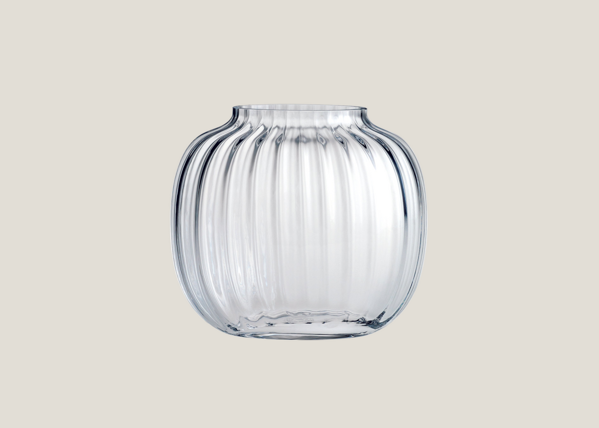 柔らかな曲線が吹きガラス製法によって作られ、側面には複雑なストライプのパターンが入っており、エレガントな印象を与えています。