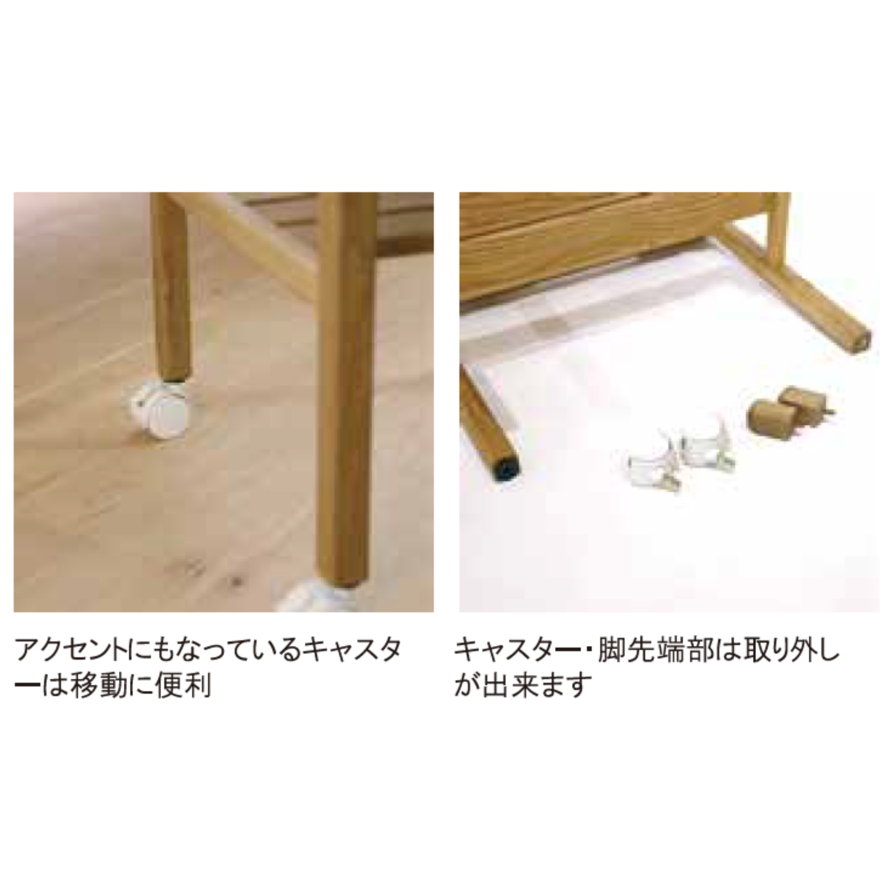 お客様がたくさん集まるリビングでは、キャスターと脚を外してサブテーブルとしても大活躍。