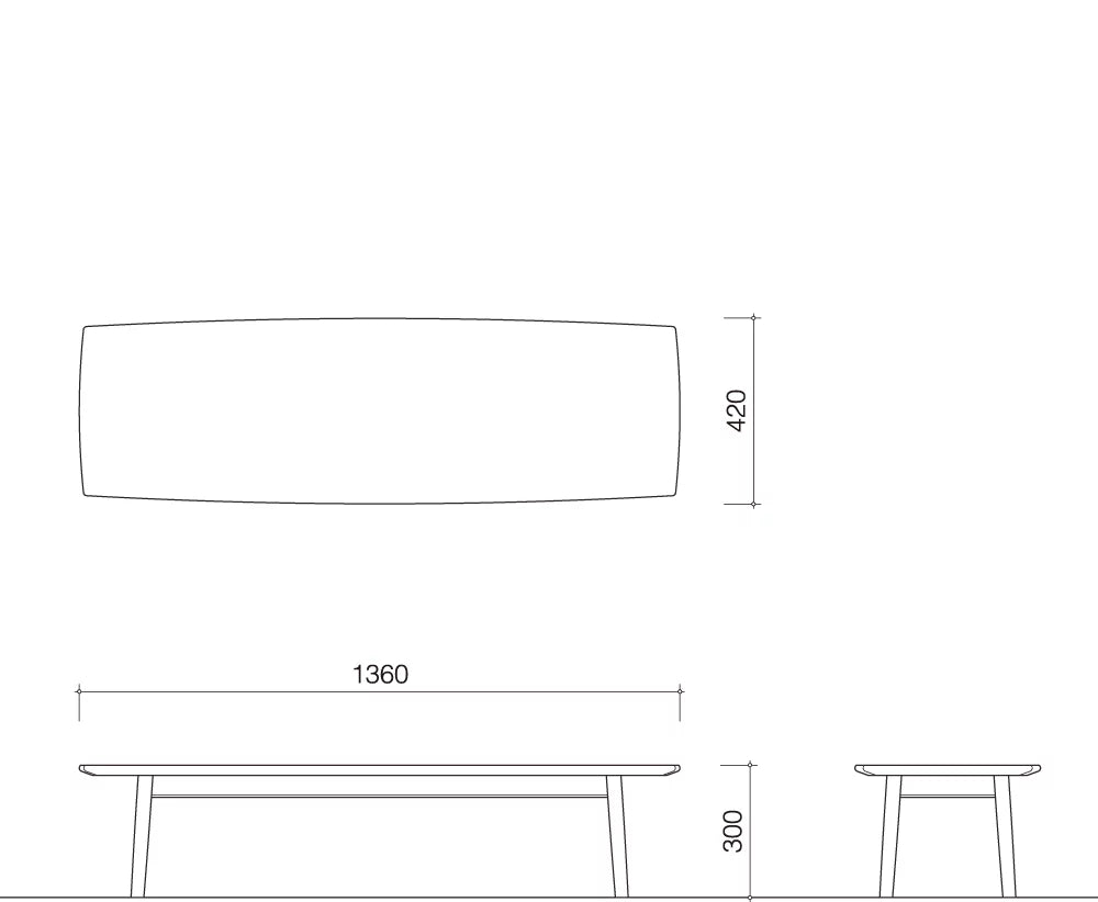 単調になりがちなテーブルに個性を与えているのは、緩やかな弧を描く天板です。