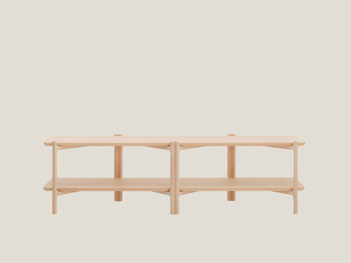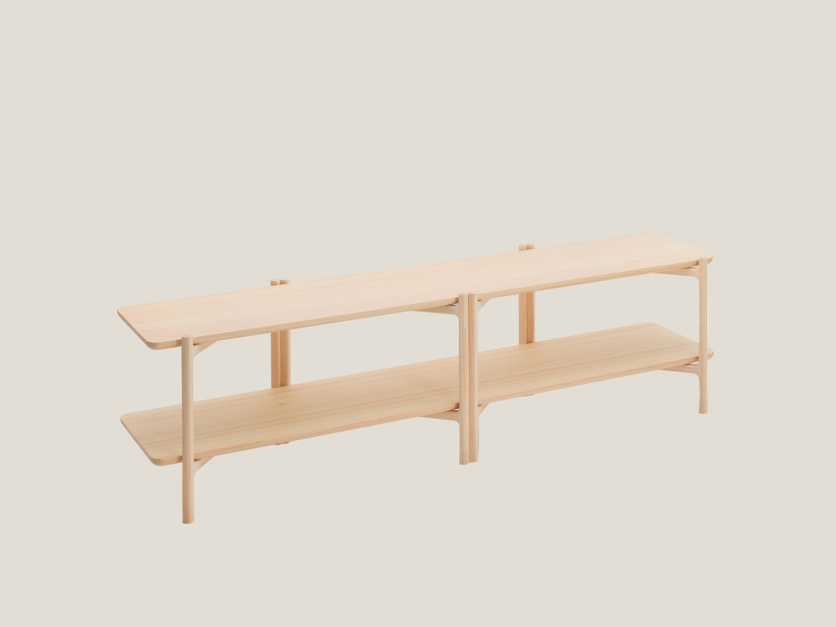 岡山県北部・津山地域で育まれた桧を使用。針葉樹ならではの滑らかな木肌と軽やかさを活かしながら、家具としての強度を確保するため、接合や継ぎにも工夫が施されています。
