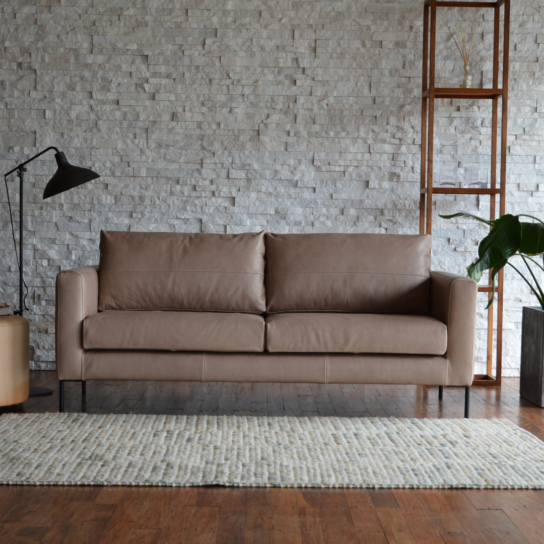 心石工芸のソファは、低めの背丈と深い座面の奥行きが特徴です。