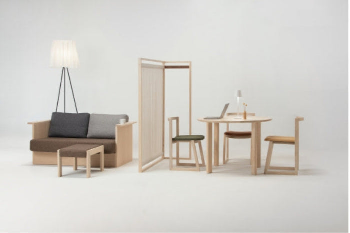 大雪木工の家具は、カバ、タモ、セン、ハンなど、北海道産の木材を積極的に使用しています。特に、なかでも定期的に伐採されながらも活用の機会が少なかったハンやセンの木を使った家具は、非常に軽量で使いやすいのが特徴。