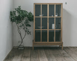 Patina, Cabinetは、裏板・仕切板・棚板をブラックに塗装し、扉の横桟と同じ高さにすることにより、余分な情報がなくなることで、何気なく置いた品物も美しく飾ることができます。