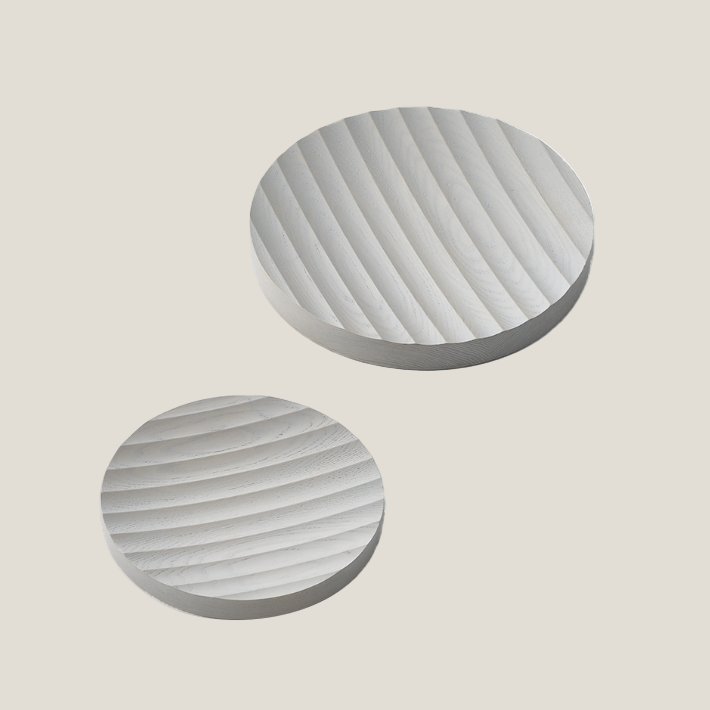 表面の波型加工はフルーツや食材を点で支えることで鮮度を保つとともに、小物を置いた場合にも取りやすい使い手に寄り添うセンターピースです。